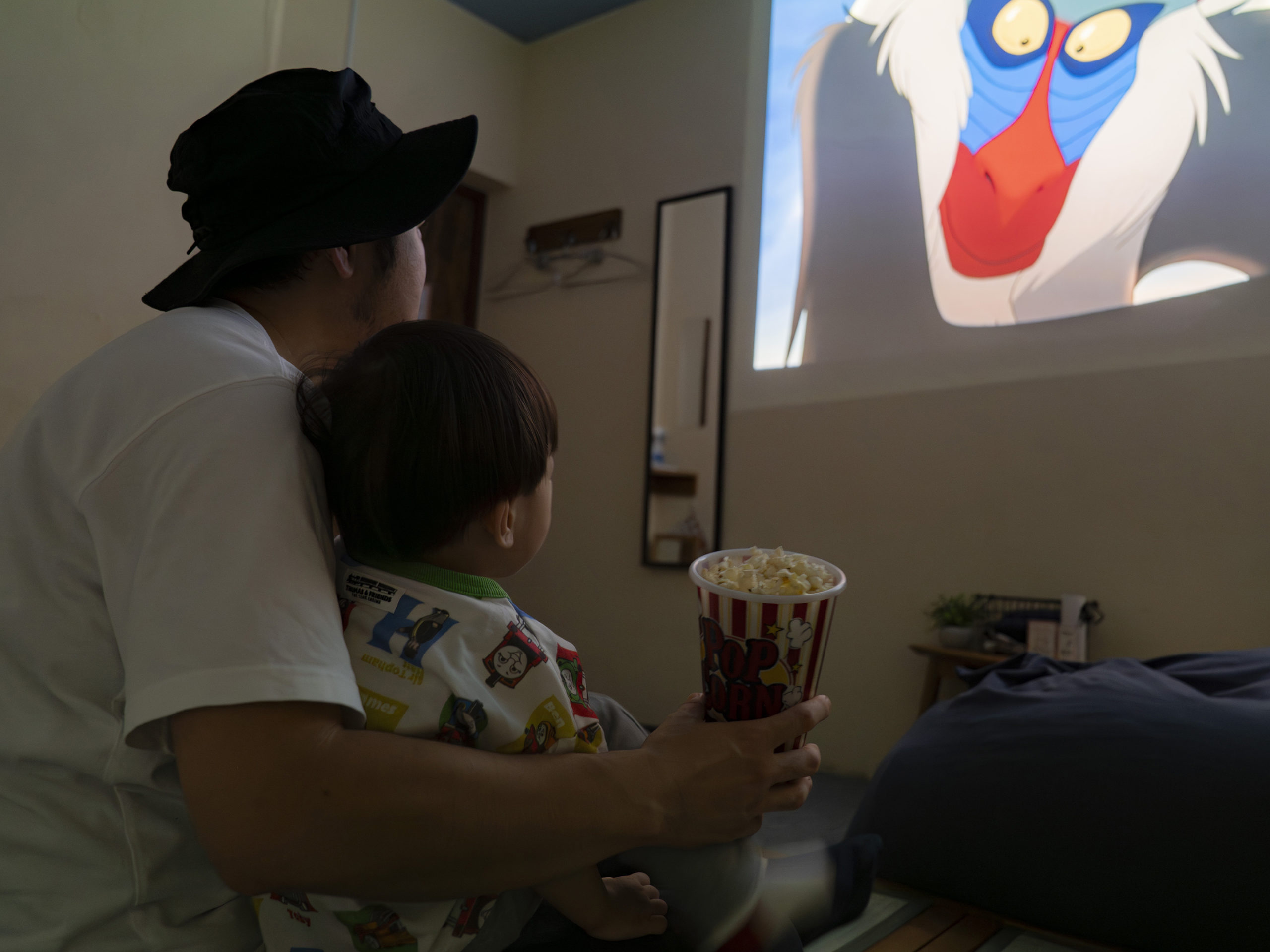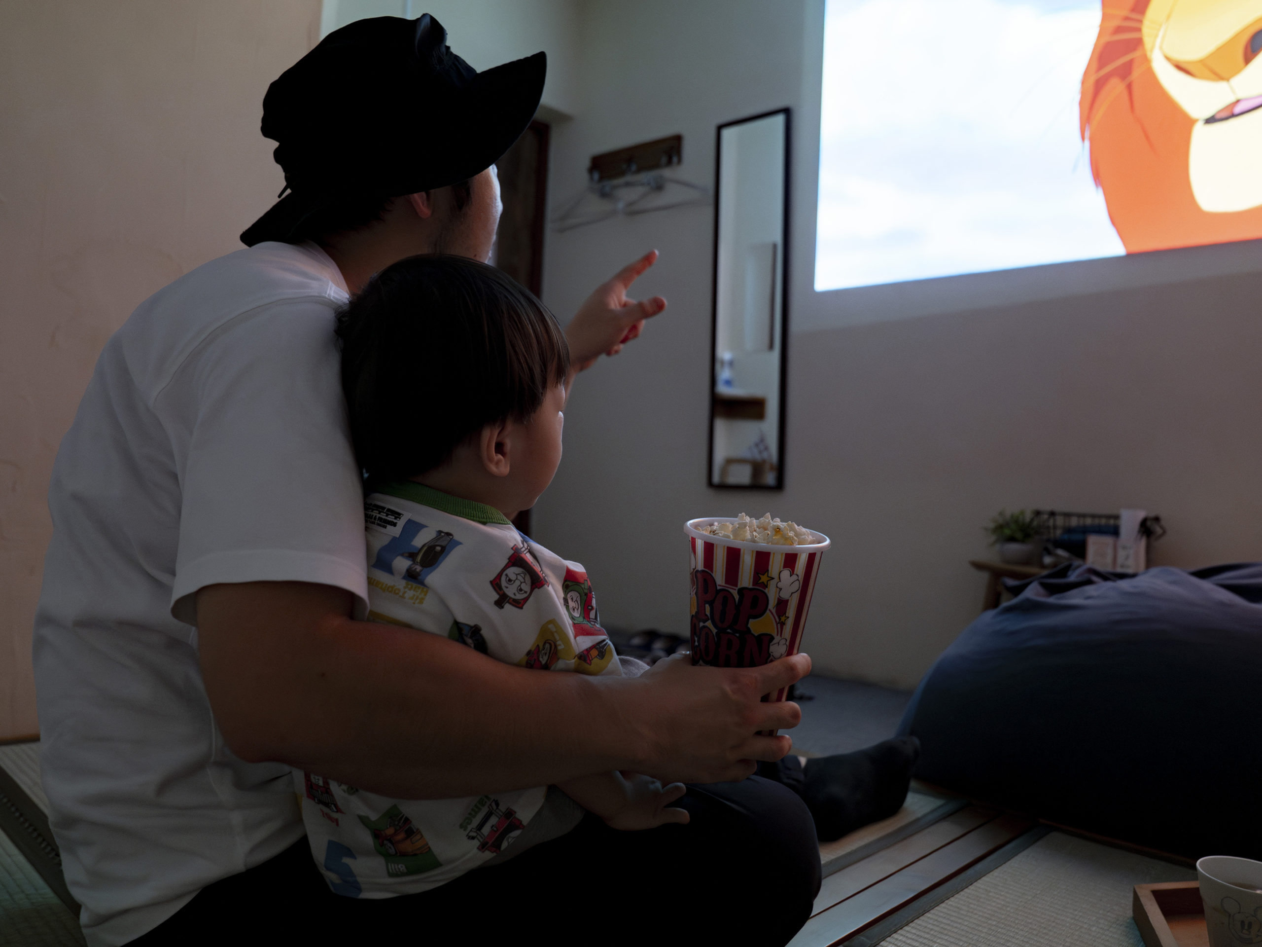 全室アラジンプロジェクターで動画コンテンツ見放題&高速フリーWi-Fi完備